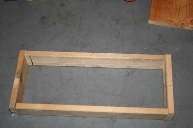 Para hacer la base, alineando los cuatro 2 1/2 "X 3/4" piezas de madera para hacer un rectángulo como se muestra. A continuación perfore un orificio piloto 3/8" del borde de las piezas más cortas de madera y en los extremos de las piezas más largas. Por último, tornillo las cuatro piezas con los orificios piloto tho hacen un rectángulo.