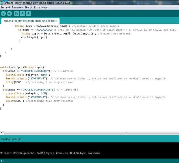 El programa de trabajo usted necesitará su número (el uno usted debe se anotó en el paso 6) donde la x son (véase el cuadro arriba). El programa funciona de una manera arduino sólo escuchará si el mensaje viene del número se rellena en donde las x son.
