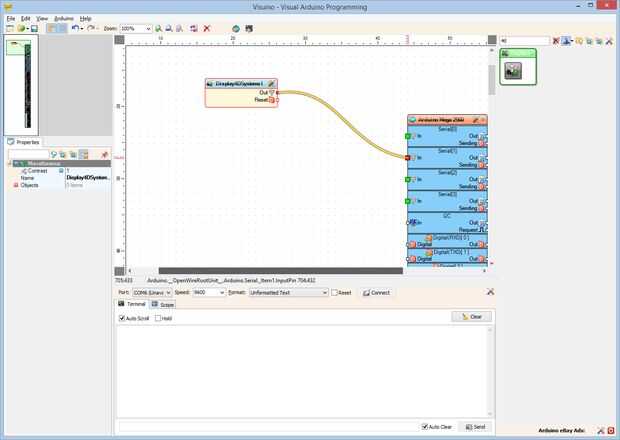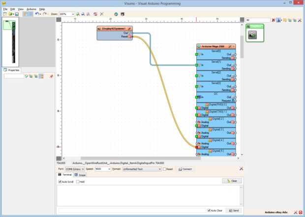 2. Conectar la clavija de salida "hacia fuera" de la componente Display4DSystems1 a la a la "en" entrada de pin del canal "serie [1]" del componente de Arduino (foto 2)