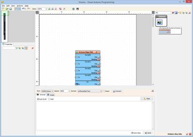1. Tipo "4D" en la caja del filtro de la caja de herramientas componente luego componente seleccione la "ViSi Genie D 4 sistemas de pantalla" (foto 1) y colóquelo en el área de diseño