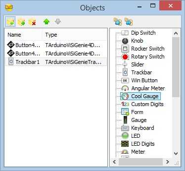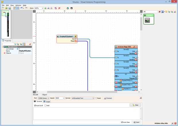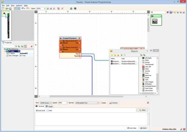 A continuación tenemos que añadir los elementos de la interfaz de usuario de la pantalla para que podamos trabajar con ellos en Visuino:
