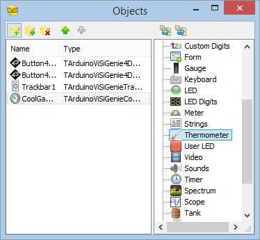 - En el editor de "elementos" seleccionar el elemento de "termómetro" de la derecha y luego haga clic en el "+" botón a la izquierda para añadir elemento termómetro (cuadro 6)