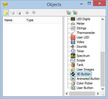 - En el editor de "elementos" seleccionar el elemento "4 botón D" y luego click 2 veces en el "+" botón (foto 2) para agregar elementos Button 2 (foto 3)