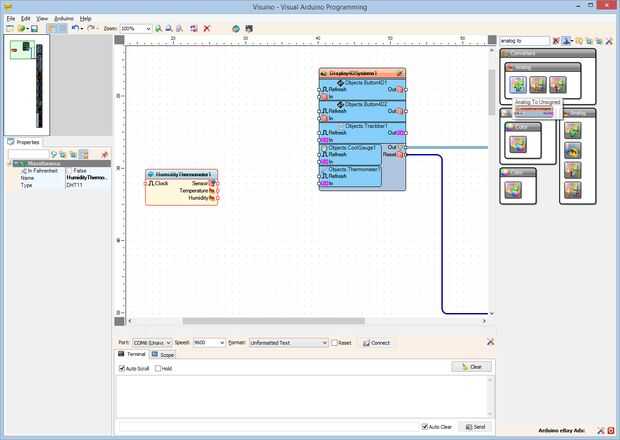 Paso 16: En Visuino: agregar y conectar DHT11 y dos componentes análogo a Unsigned