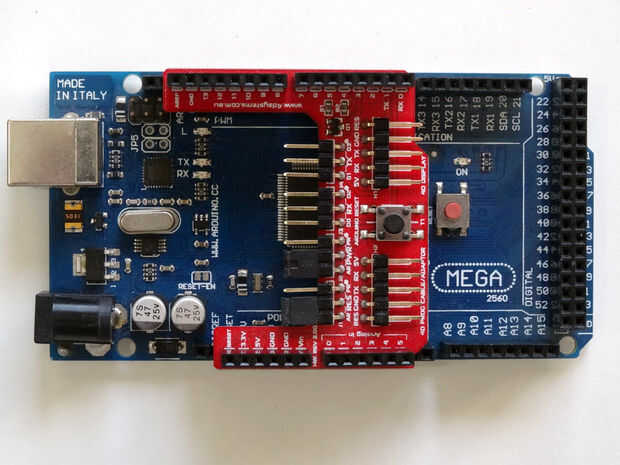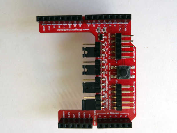 2. Enchufe el 4 D Arduino adaptador protector encima de la placa de Arduino (foto 3)