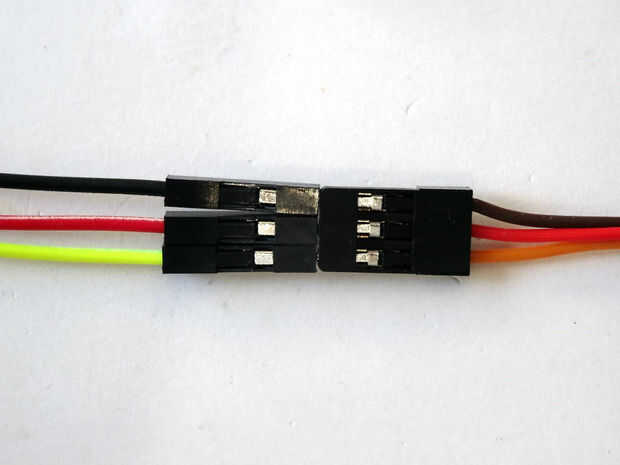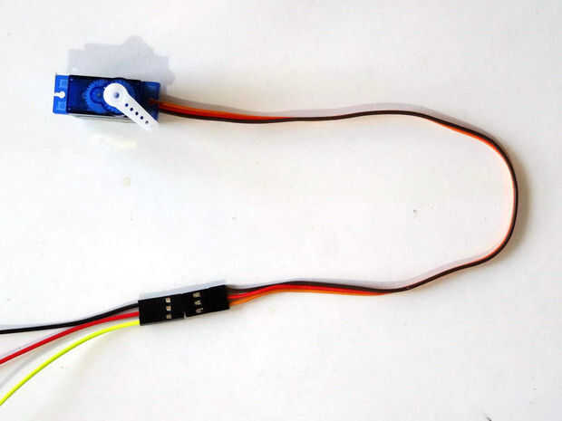 3. Conecte los cables de puente Macho al poder (cable rojo) tierra(cable negro) y Servo Control(cable amarillo) del módulo Servo (foto 3 y 4)