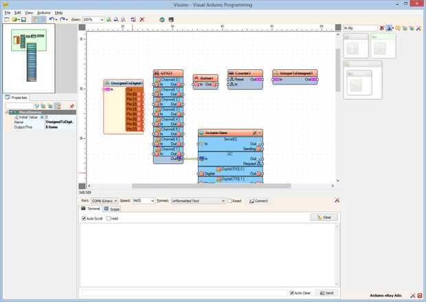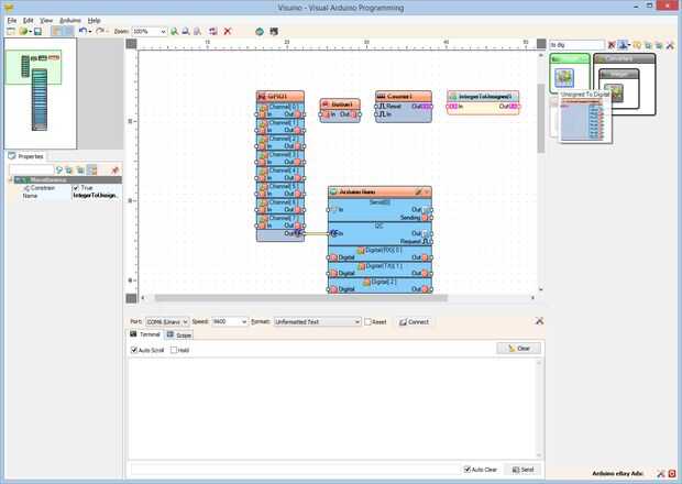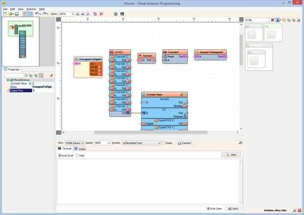 5. En el Inspector de objetos establezca el valor de la propiedad de "Pins de salida" del componente UnsignedToDigital1 "3" (foto 6)