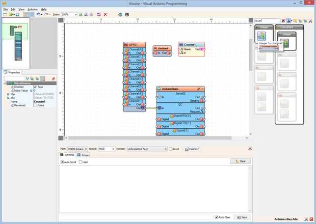 4. Tipo "a" en la caja del filtro de la caja de herramientas del componente, seleccione el componente "Unsigned a Digital" (foto 4) y caer en el área de diseño (cuadro 5)
