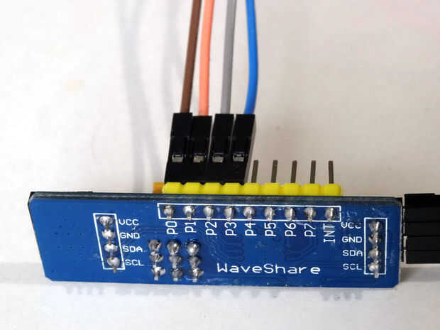 8. Conecte el otro extremo de la Señal de pulsador (cable marrón) en el pin P0 del PCF8574/PCF8574A GPIO módulo