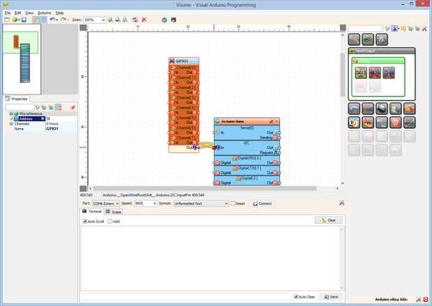 2. En el Inspector de objetos, puede que necesite cambiar el valor de la propiedad "Dirección" del componente GPIO1 (foto 2) (ver paso 2 de Instructable para más detalles en la selección de la dirección de I2C)