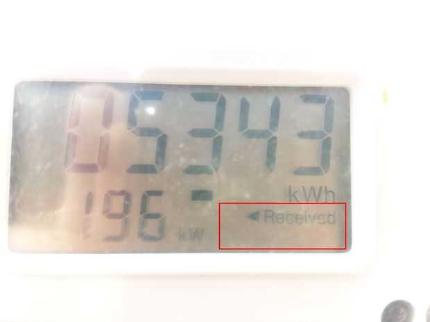 Dentro del rectángulo rojo, el medidor de red dice o recepción (surtidor de la energía está recibiendo energía de nosotros) o entregado (recibimos energía del el surtidor de la energía). Pero el contador sube en ambas situaciones.