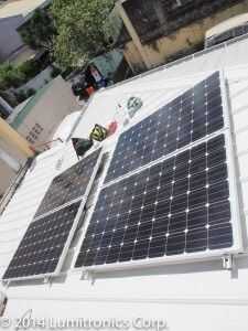 En junio de 2015 tenemos nuestro sistema de panel solar de 1kW instalado. Es un sistema en la red, por lo excesivo de energía es enviar hacia la red pública. Comenzamos el proceso con el proveedor local de energía Meralco Haz registrado para la "medición neta". "Medición neta" significa que nos pagan por la energía que enviamos hacia la red pública. Pero nos paramos en medio del proceso, porque es agotador, complicado y los requisitos adicionales (interruptor adicional, evtl. medidor de vatios adicionales, actualizado plan eléctrico por un electricista,...) nos hubiera costado mucho dinero.