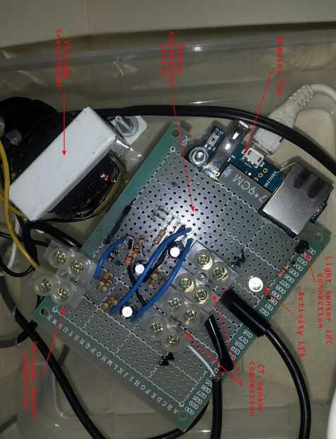 El Arduino Yun es básicamente dos sistemas independientes de una tarjeta. Tiene un regulador micro del AVR de 8 bits y un sistema Linux basado en el Atheros AR9331. La Atheros funciona una distribución de Linux basada en OpenWrt namedOpenWrt-Yun (Aka Linino). Yo uso el regulador AVR para la medición de corrientes, la tensión y la luz. Estos datos entonces se transfieren al sistema de Atheros que realiza la parte de comunicación para distribuir los datos. La comunicación entre el AVR y la Atheros se realiza mediante una conexión en serie y un software llamado el "puente". Hay varios tutoriales en la web que explica cómo los dos sistemas se comunican entre sí mediante el "puente". Voy a explicar sólo las pocas funciones del "puente" que uso en esta aplicación.