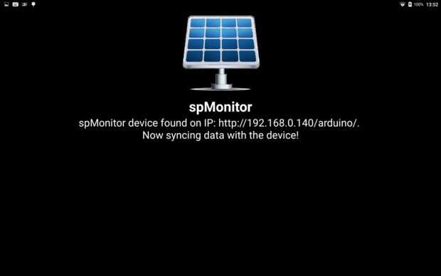 La pantalla muestra en la fila superior el actual consumo de energía (azul), la producción del panel solar (luz naranja) y en el medio si la exportación o importación de energía desde la red o. A continuación se muestran los valores máximos.
