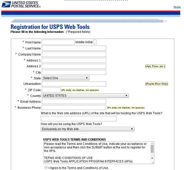 Paso 2: Herramientas de la Web de USPS de configuración.