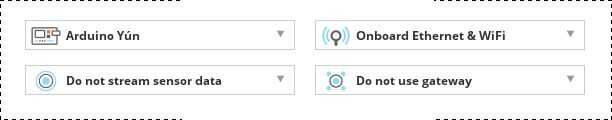 - Primeros 4 campos: Queremos tener un Arduino Yun - no flujo de datos del sensor - Onboard Ethernet y wifi - no usar puerta de enlace.