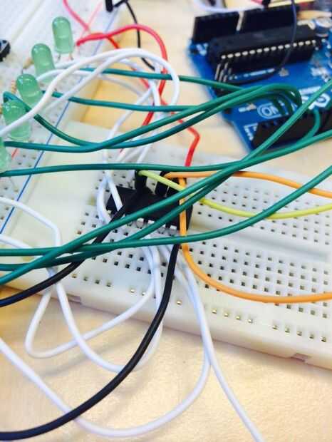 Elija un protoboard grande que usted tiene un montón de espacio y fácilmente puede corregir un error que fácilmente puede occure teniendo un montón de cables. Mira el circuts y ver ShiftOut arudino.cc si es necesario.
