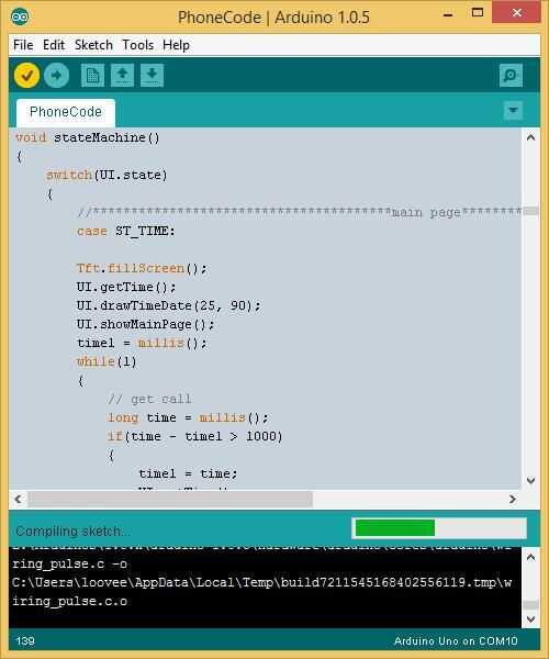 Por último, abrir ArduinoPhone.ino con Arduino IDE, entonces uplaod código fuente ArduinoPhone.