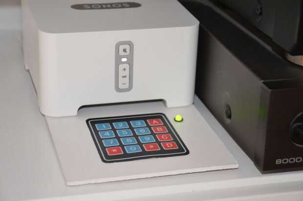 Normalmente sólo escuchamos a algunas estaciones de radio locales (y por supuesto thejazzgroove.com...), por lo que un simple teclado de 4 x 4 ofrece más que suficientes controles para ello. La configuración actual preve 13 canales de radio + volumen arriba/abajo + silencio.