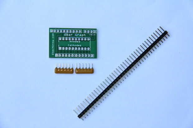 Paso 2: Encontrar el gráfico de barras LED y encontrar el lado que dice "YS" en el lado. Estos son los ánodos de los LEDs en el gráfico de barras. Poner la parte que dice "YS" en el lado en el gráfico de barras en la placa que dice "Ánodos". Ponga el lado no marcado en el lado "Cátodos" del gráfico de barras en el PCB. El gráfico de barras de la soldadura en su lugar.
