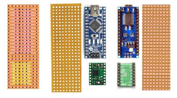 - Asegúrese de dividir las pistas de cobre sobre la veroboard entre la fila de pines en el lado izquierda / derecha del arduino y el controlador de motor paso palo. Ver a la izquierda la mayoría del diagrama en la imagen 3.