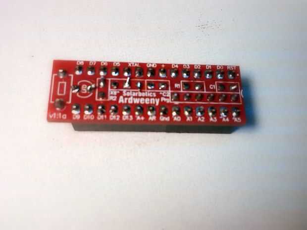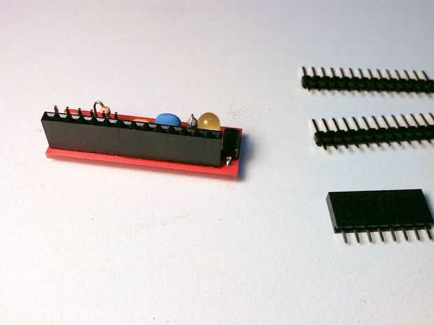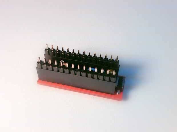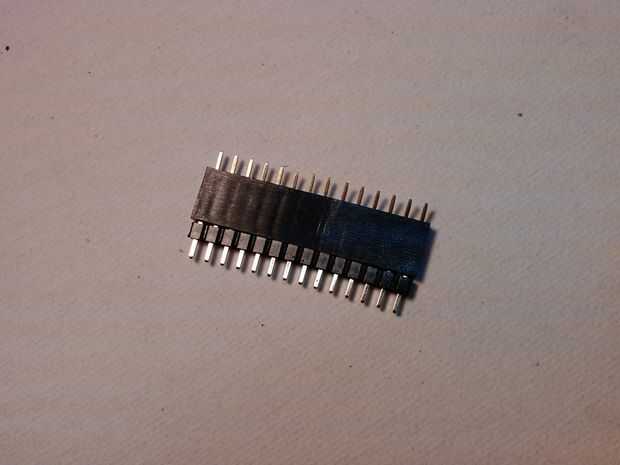 2) Inserte las 14 clavijas cabeceras hombre tira en la parte superior las dos cabeceras mujer para mantenerlos alineados.