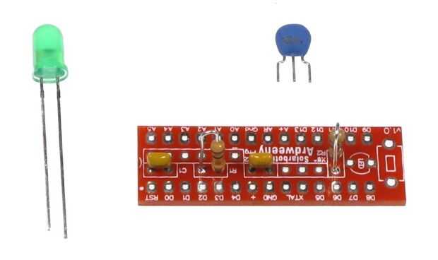 Sin embargo el LED tiene una polaridad por lo que tienes que tener cuidado de que manera se instala. Eche un vistazo cerrar en él y encontrar el lado plano del LED. El lado plano es el cátodo, que también tiene la pierna más corta de los dos (el plomo, más largo es el ánodo). El lado plano va a la almohadilla cuadrada en pcb. También se puede ver un lado plano en la pantalla de seda.