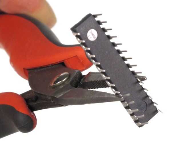 Utilizando sus pinzas, doble cada par de piernas en plana contra la IC. Esto hará que sea ajustar el espaciado entre las piernas nuevo mucho más fáciles.