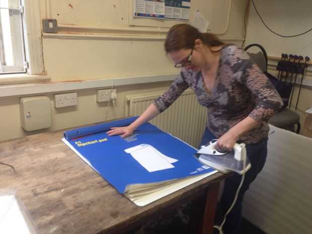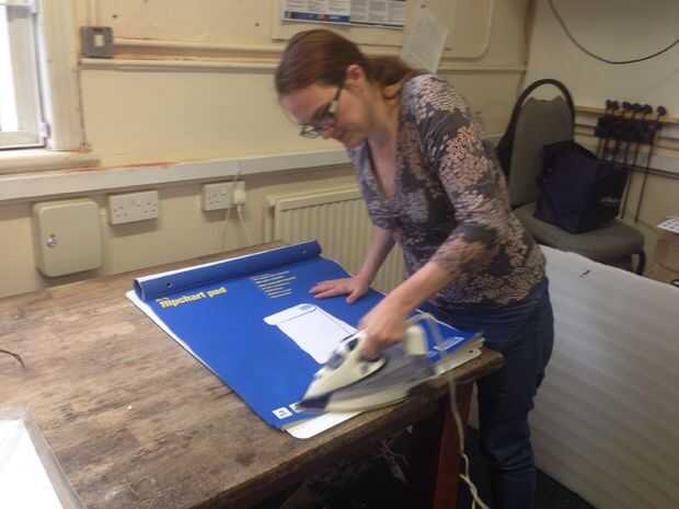 A continuación, encontramos un viejo cojín rotafolio que había sido donado a nosotros. Realmente no tenemos un papelógrafo, y el papel no es de calidad suficiente para la obra de arte o hacer. Pero es lo suficientemente blanco y reflexivo para nosotros aquí! Porque estaba un poco arrugada, hemos planchado antes de su uso.