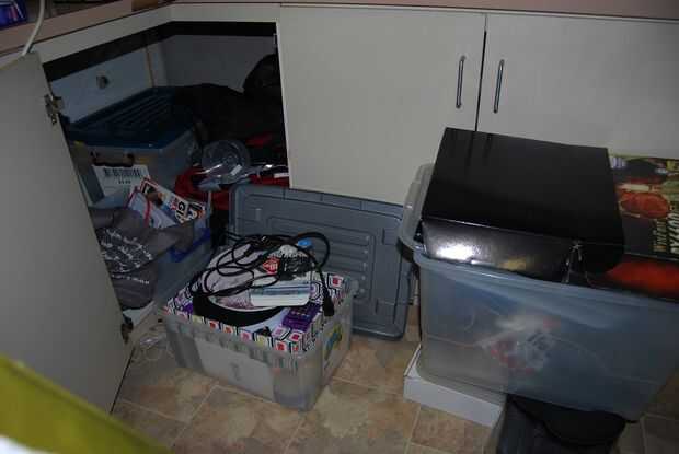 El gabinete de cocina de esquina es curso hogar de viejos papeles, todas mis piezas de la computadora y multitud de cables (pero no la necesita) y manuales y discos de software. Actualmente bloquea el acceso al fregadero que tiene un número de elementos de la mesa de trabajo que deban ser fregado a la muerte.