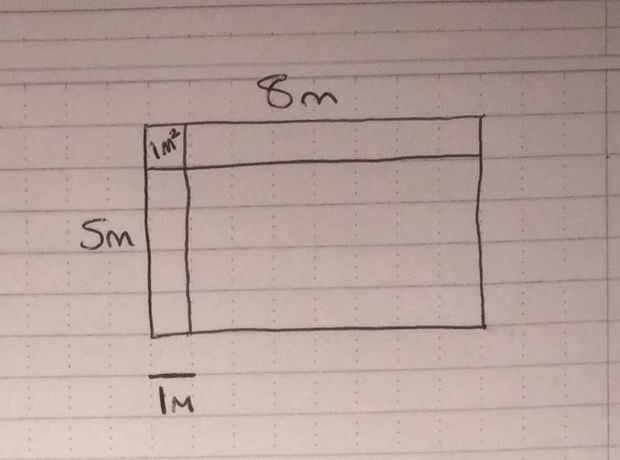 La idea de la zona es para que identificar cuántos cuadrados caben en el centro de su objeto. como ver en la foto he marcado un cuadrado de 1m para mostrar lo que usted está buscando.
