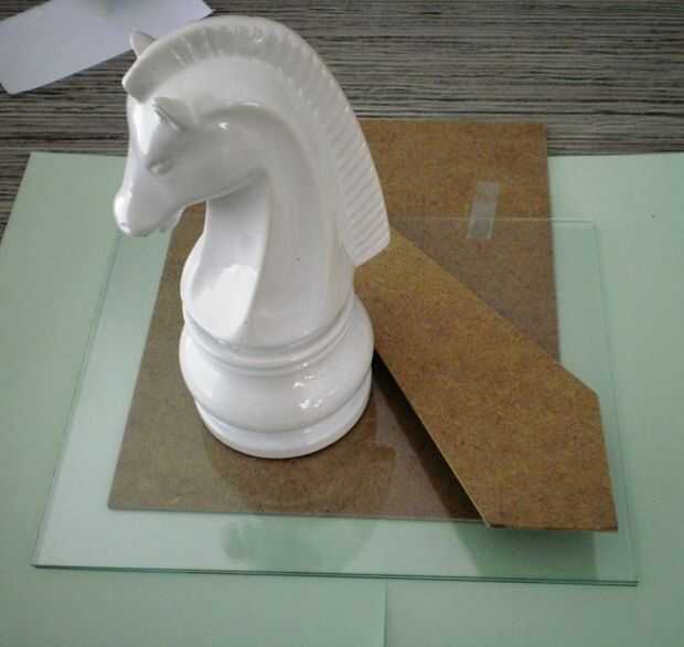 Coloque a un espaciador entremedio. Usé el respaldo de uno de los marcos.