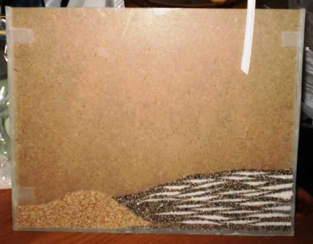 Una de mis decoraciones favoritas en mi estudio siempre ha sido un cuadro de arte arena cae. Estas son distracciones de escritorio clásico - dos paneles de vidrio con una pequeña separación entre ellos, lleno de arena y agua. Voltee el marco, y grave