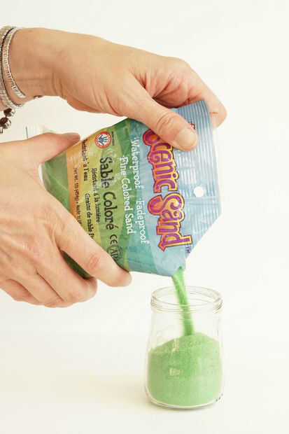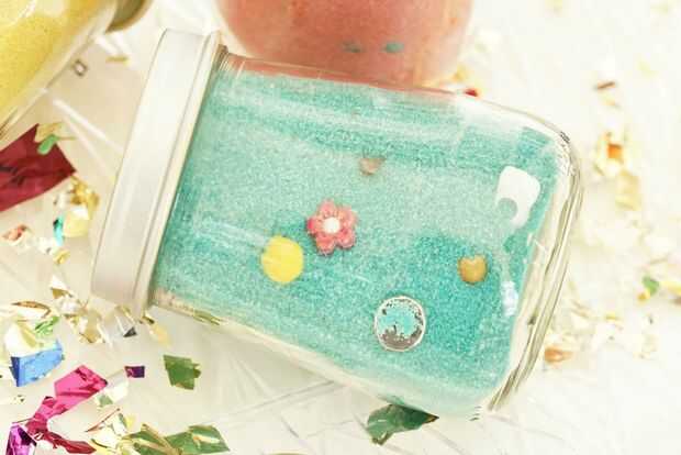 Arena coloreada encontrar y buscar tarros de fiesta (3 / 5 paso)