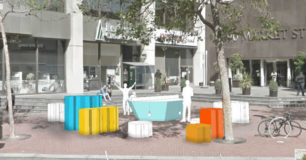 Concepto de diseño para el proyecto se inició primero en nuestra empresas gLab mensual - una reunión después de horas de personal de Gensler SF por un diseño de charette. En ese proceso, se analizaron las diferentes condiciones existentes percibido o conocido a lo largo de Market Street, así como diversas personalidades de los distritos mencionados como parte del festival. Proporcionamos imágenes precedente en una variedad de elementos de diseño (muebles, arquitectura, arte, etc.) para servir como una ayuda visual para provocar ideas y luego la gente se animó a las ideas de la lista o bocetos (a través de notas post-it) de elementos pensaban podrían ser una característica atractiva peatonal.