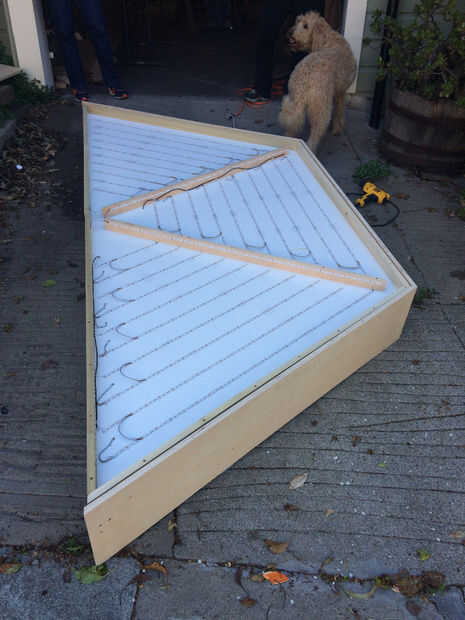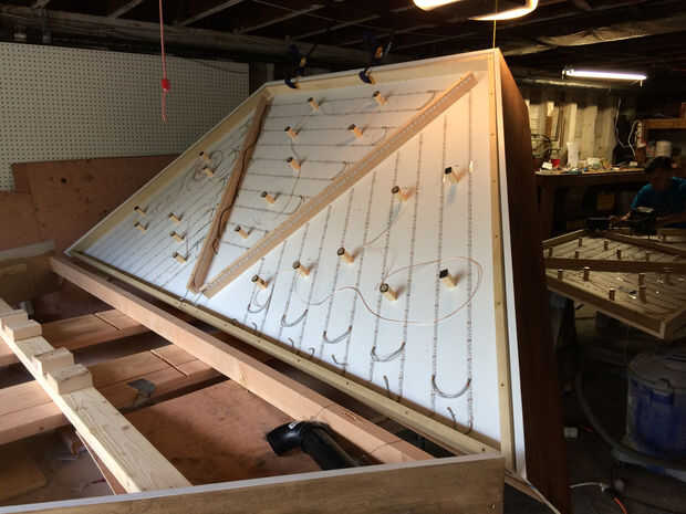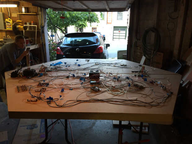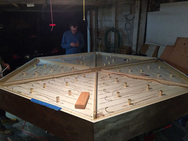 - Fabricación duró 4 meses comenzando con la construcción de los paneles de LED. Tiras de luces LED estaban pegadas a una base, con el cableado eléctrico que se está distribuyendo por debajo de la madera contrachapada. Nos dividimos los paneles en dos mitades de la tabla.