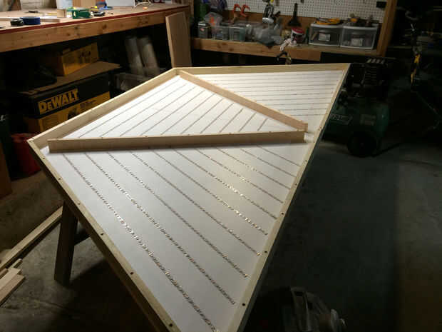 - A continuación creamos el marco para los paneles de luz LED ser ubicado con madera dimensional. Fue hecho para ser lo suficientemente robustos para sostener mucho peso.