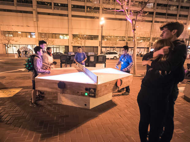 Una vez que la instalación estaba en lugar, enarboló inmediatamente los intereses de personas que pasaban. Es raro que el himno de Space Jam no insight algún tipo de reacción. Tan pronto como la gente podría identificar las paletas de ping pong, no era mucho antes los jugadores comenzaron a jugar. Al principio, sería 2 jugadores en un momento pero después de un rato, otros jugadores saltaría en jugar. Porque no había ningún conjunto definido de reglas, a veces que el juego se puede jugar utilizando una estructura de equipo 3 vs 3 mientras que en otras ocasiones, serían 3 juegos separados en donde los jugadores uno frente a otro tienen su propia bola. Ping-pong berlinés - donde los jugadores giran alrededor de la mesa y tienen que tener un solo golpe - era también muy popular técnica de juego.