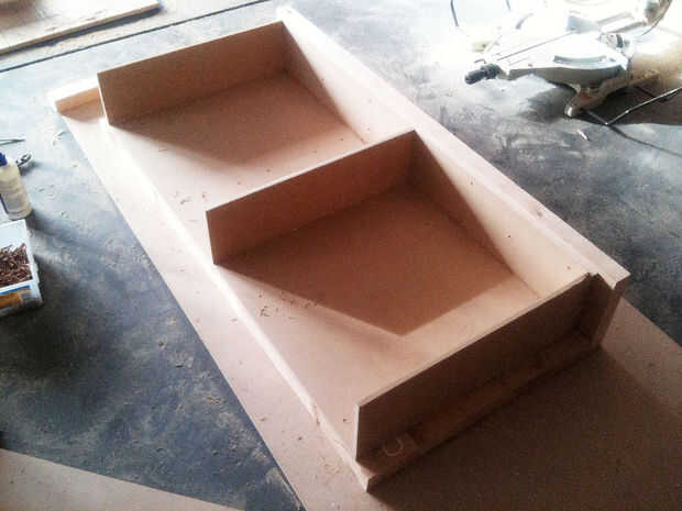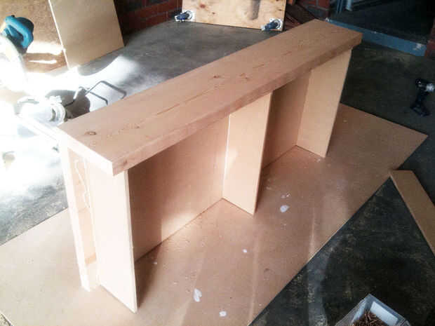 1. pegue y atornille la placa de tapa de MDF a la cara de frente MDF