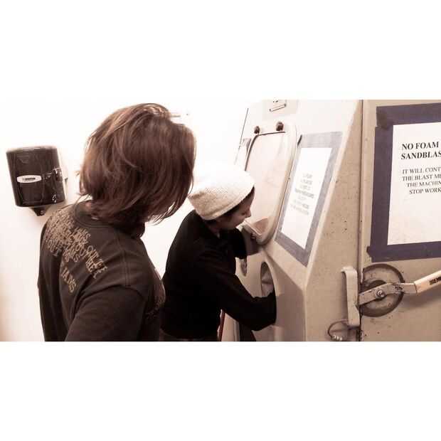 Apunte la pistola a su objeto y uniformemente stroke it--ser conscientes de que los granos de arena pela lejos capas de vidrio.