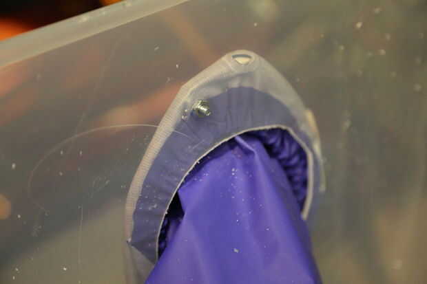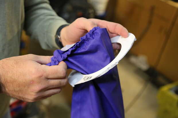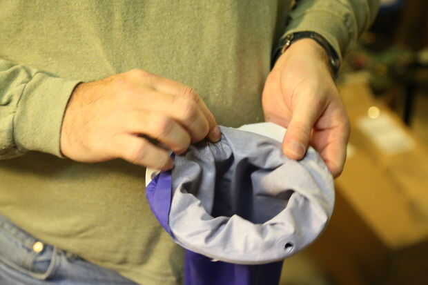 Tuvimos que cortar los bordes en exceso de los anillos de manera que podríamos envolver el guante en la parte interior para un mejor ajuste.