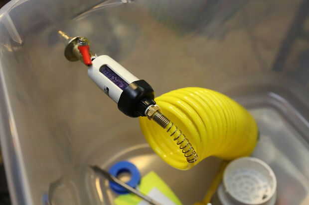 - Conectar la manguera de la bobina al conector o añadir una válvula de cierre como lo hicimos. (Me enteré de esto fue inútil, pero dejó de todos modos)