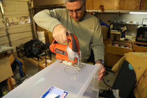 Taladre un agujero para el tubo de 1/2" a pasar por lo que pueden dejar sus medios de explosión fuera de la bañera.