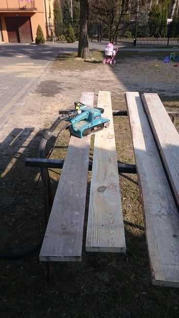 después dopiero można było przystąpić hacer, szlifowania, gdyby deski Były bez pozostałość betonu, było de piej naj por je Prze strugać na grubościówce na lub heblarce por się pozbyć wszelkich nie równość i drzazg. po szlifowaniu też wyszło bardzo fajnie tylko trochę dłużej :)