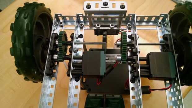 Coloque las barras roscadas en el exterior escondido en la barra de ángulo de trineo. Ahora Conecte los otros extremos de las barras roscadas a la mitad de barra de ángulo del robot.