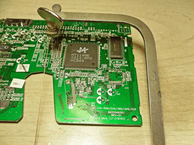 De joyero tiene sus límites de la sierra ya al alcanzar una profundidad dada, el brazo soporta la hoja de la hoja empezará a tocar el material. Muchos circuitos impresos son más grandes de esta profundidad, por lo tendrás recortar una pieza manejable. La pieza se puede tomar de la esquina, puede ser una tira, dependiendo de la forma del circuito del partes. El mío ya tenía un recorte personal, así que lo aproveché.
