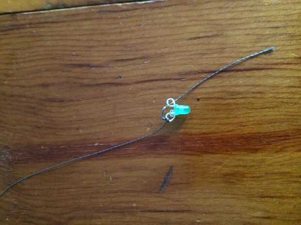 Corte un pedazo de 1 ft de hilo conductor. Atar el extremo en el bucle negativo del LED. El nudo con pegamento del grano de cemento y cortar cualquier exceso de hilo.