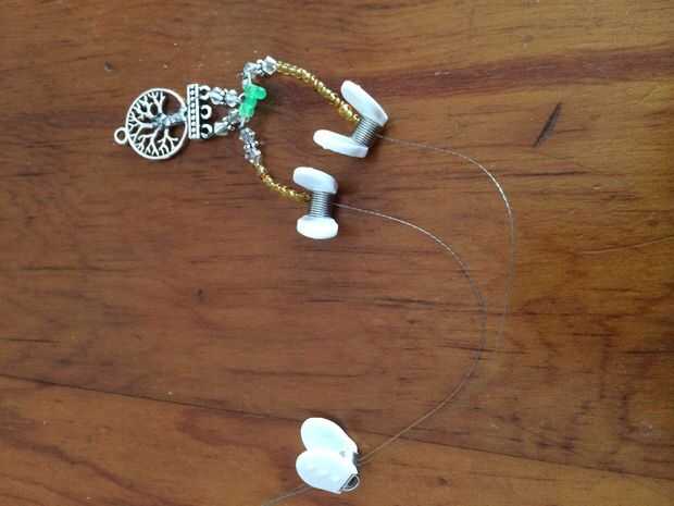 Con su tercer error de grano, coge los dos hilos de los bucles negativos de LED para mantenerlos fuera del camino. Te conecta la batería a continuación, electrificando las piezas de plata de la pendiente, y contacto accidental con los hilos negativos puede causar un cortocircuito, freír tus LEDs y necesita comenzar de nuevo.