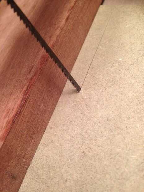 Funcionando la madera contra la valla de madera de desecho lentamente en la hoja me ayudó a lograr un corte consistente en una paz de espesor uniforme de la madera.