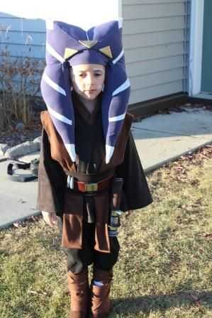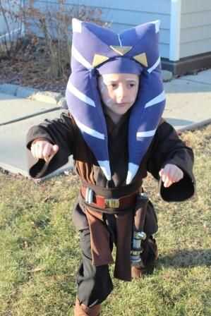 La parte más difícil de su traje era el casco. Los montrals y lekku para caber una pequeña seis años cabeza-de tela - no es es una tarea sencilla. Le pedí a un amigo vestirse consejos y terminó utilizando papel para formar un patrón 3D básico para las piezas que necesitaba. Este patrón evolucionado varias veces a través del proceso. Originalmente tenía la intención de hacer la pieza una independiente artículo podía sólo pop en la cabeza, sin embargo él no estancia todavía. Es una cinta amarilla en taekwondo y que seis se mueve mucho cuando su traje. Para resolver el pedazo cabeza caerse problema, tomé el lekku y hecho a la espalda una sola pieza que era la mano cosió a un sombrero de béisbol sin un proyecto de ley. Encima de cosieron el montral y pedazos de lekku frontal, luego la mano cosió los en el sombrero de la base. Había un pequeño espacio que dejé abierto para llenar los espacios vacíos en el casco. Una vez que se rellena correctamente, cosió a cerrado con tu puntada invisible básica. Las perlas silka son granos solo encadenan cosida a la parte superior de la pieza y posteriormente recubierta con su tocado de dientes de akul, que hecho de la diversión oro pintado de espuma y arena para dar textura o la dimensión. Más tarde agregué una pequeña banda en la parte delantera de la pieza para mantenerla en su cabeza. Las franjas están pintadas a mano con pintura de tela. Toda la pieza una vez usada no es demasiado pesada ya que está lleno de polyfil y permanecerá en su lugar a través de un montón de salto, balanceo, patadas y duelos Jedi.